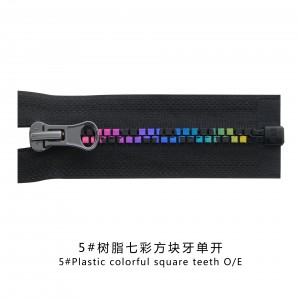 Colorful teeth zipper5# plastic colorfui square open end zipper